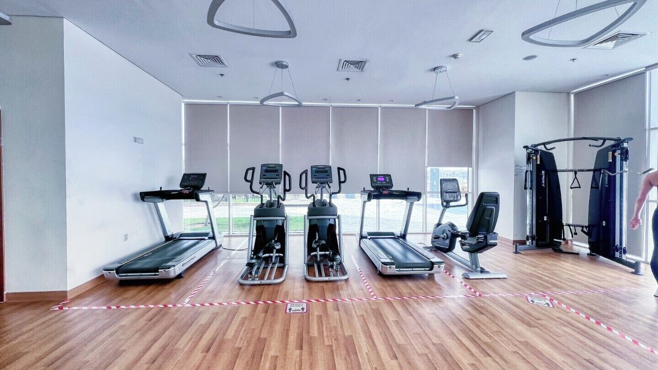 The Reef Residence studio apartment at jvc. After a day of exploration, return to your serene retreat with stylish design and breathtaking golf course views. The apartment’s comfort and elegance make it a perfect getaway, while the building’s corners feature a 24/7 supermarket, restaurants, coffee shops, and salons for ultimate convenience. Enjoy a dip in the pool or a workout in the gym, all within a vibrant, well-connected community.