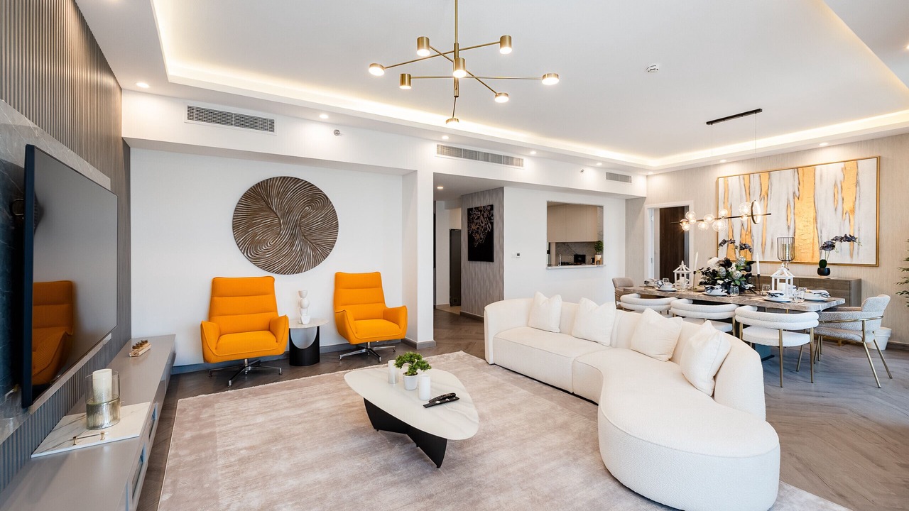 Feel like a VIP while sipping your mocktail at night with a full view of the Burj Al Arab from your private balcony. Need more luxury? Head over to your private rooftop and take in the stunning city view. If you prefer a quieter, more private atmosphere, why not relax on the curved sofa and catch up on your favorite TV series? And if takeout loses its appeal, head to the fully equipped kitchen stocked with all the essentials: stove, oven, microwave – you name it. After indulging at the modern dining table, simply load everything into the dishwasher. Plus, there's a washing machine for your laundry needs and high-speed Wi-Fi to stay connected with your friends.