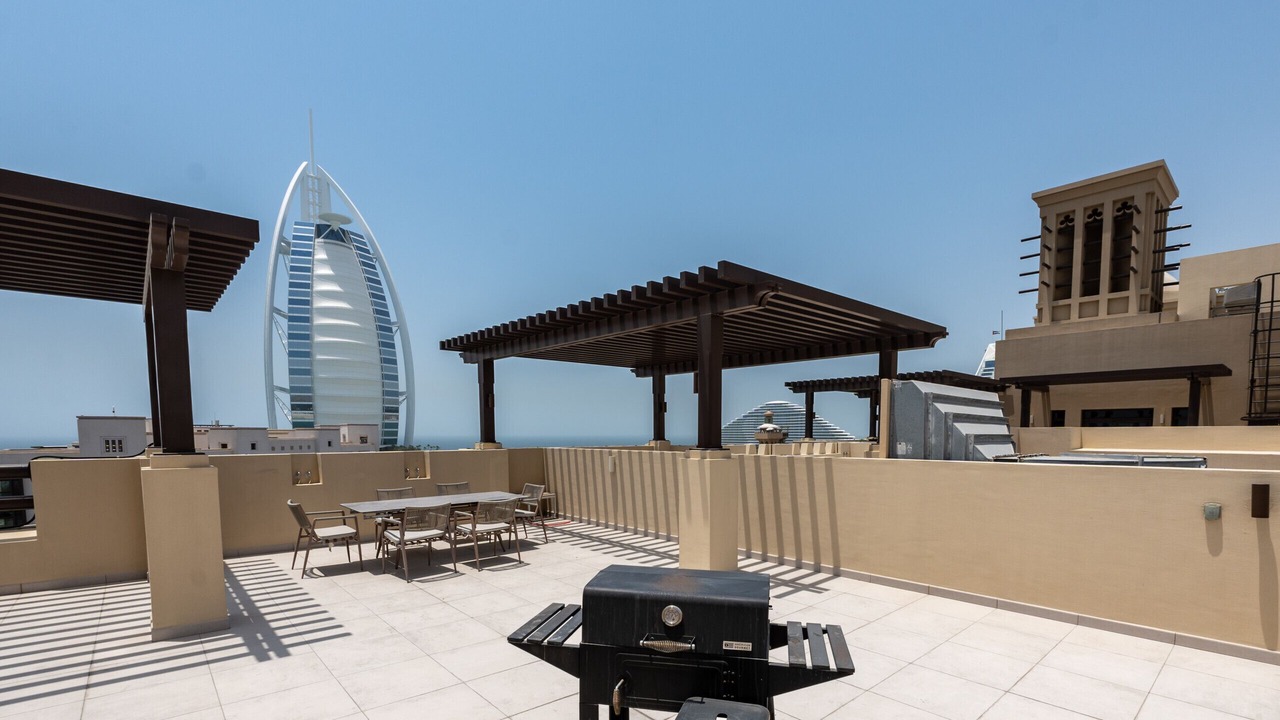 One of the must-dos when visiting Dubai is to see the renowned Burj Al Arab, often called a seven-star hotel. How about staying in a premium space within walking distance from this masterpiece? This space will spoil you with its full view and high-end furnishings. Make sure to pack your SPF, as you may want to swim all day with the Burj Al Arab in view or keep fit in the gym while away from home.